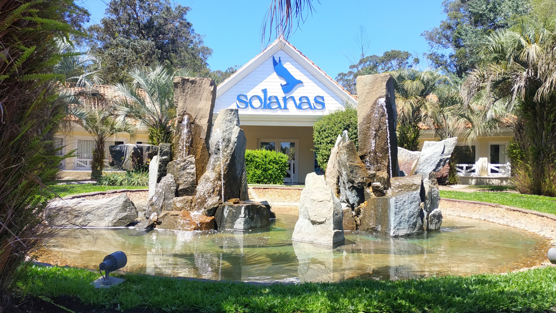 AD - Solanas es un emprendimiento que tiene 40 años en punta del este, donde hoy tenes una diversidad de productos que te podemos ofrecer, desde estadías de hotelería, invertir en un terreno y tener tu casa, comprarte un departamento en un desarrollo de propiedad horizontal, estamos esperando que rápidamente se pueda resolver protocolo de los eventos sociales y corporativos, que te puedas venir a casar, que te puedan venir a festejar el cumpleaños a tus hijos, tenemos un centro de convenciones para 1.200 personas, que está ubicado en la cristal beach, que es la laguna artificial que nosotros hemos inaugurado.
